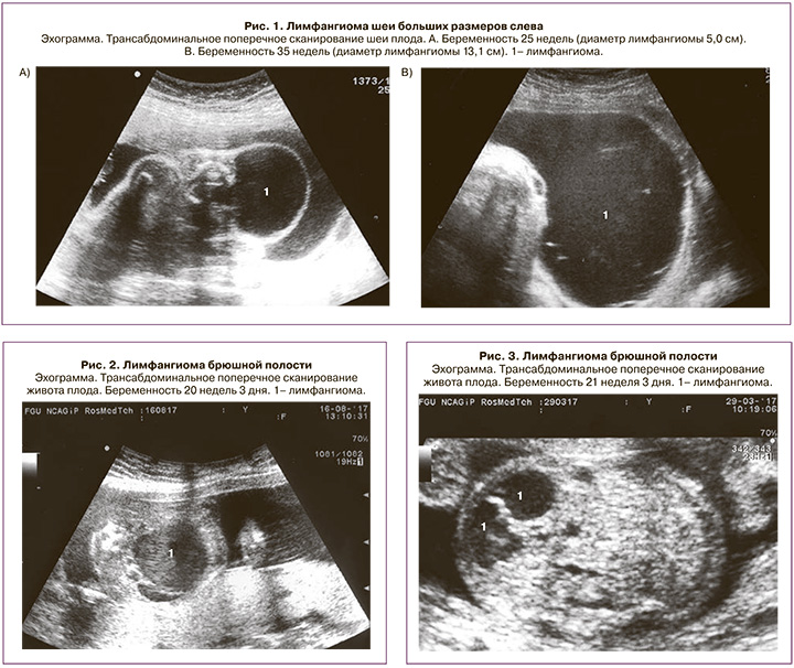 Диагноз «лимфангиома плода» был правильно поставлен всем женщинам в сроках 18–37 недель при первом же обращении в Центр за консультативной помощью.