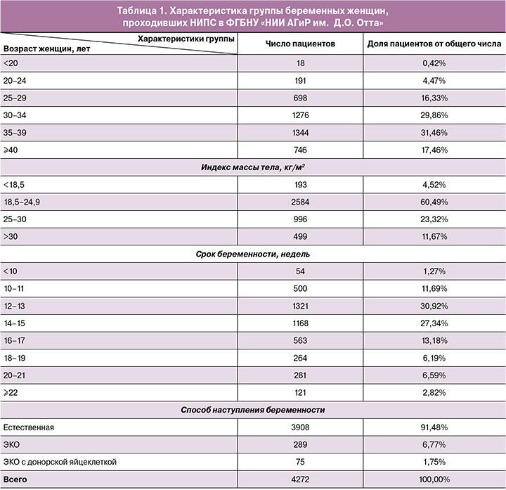 В таблице 2 приведены данные по группам беременных, которым проводили неинвазивное пренатальное исследование.
