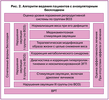 Проведенное исследование позволило рекомендовать алгоритм ведения пациенток с ановуляторным бесплодием (рис. 2).