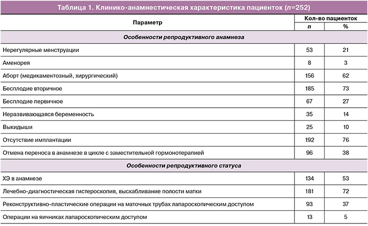 Клинико-анамнестическая характеристика пациенток представлена в таблице 1.